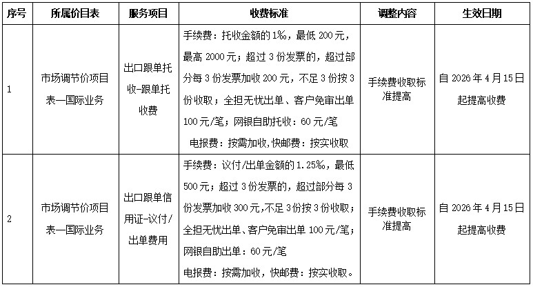 為了向您提供更加優(yōu)質(zhì)便捷的服務(wù),根據(jù)國家有關(guān)規(guī)定,我行擬調(diào)整部分收費(fèi)項(xiàng)目并進(jìn)行規(guī)范公示?,F(xiàn)將本次調(diào)整情況公告如下: